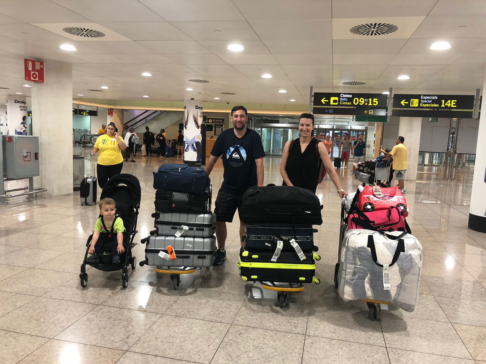 What you are seeing here is a family brexiting from the UK at Barcelona El Prat Airport. ( someone to photoshop-out the yellow woman).